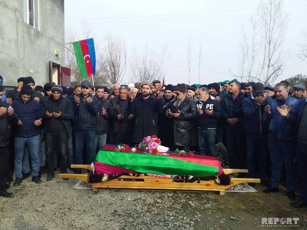 Azərbaycan Respublikasının Dövlət Bayrağı şəhidin atasına təqdim edilib. Yaylım atəşindən sonra, şəhidin nəşi torpağa tapşırılıb.