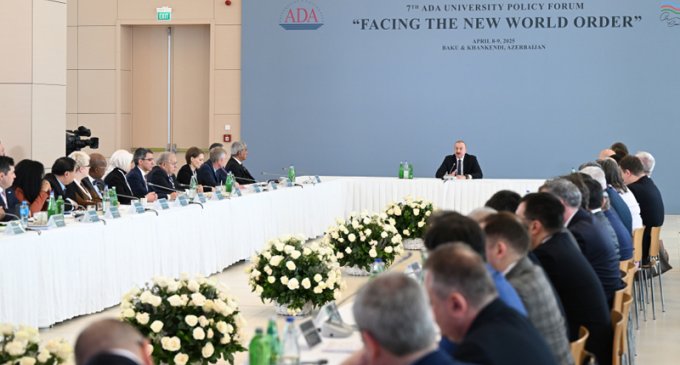 Aprelin 9-da ADA Universitetində Azərbaycan Respublikasının Prezidenti İlham Əliyevin iştirakı ilə "Yeni dünya nizamına doğru" mövzusunda beynəlxalq forum keçirilib.