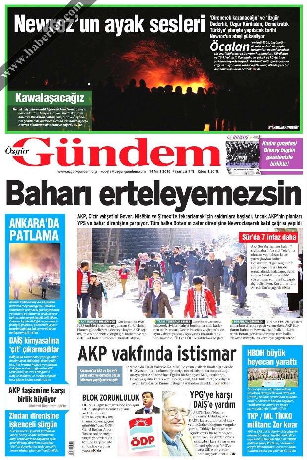 "Özgür gündəm" Türkiyədə çıxır və davamlı olaraq terrorçu PKK və onun iddialarını təbliğ edir.