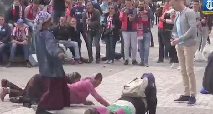 Publika.az xəbər verir ki, Hollandiya klubunun tərəfdarları dilənçi miqrant qadınlara pul ataraq onları yerlərdə süründürüblər.