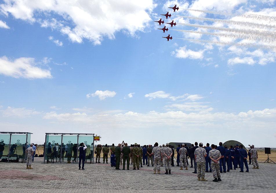 Əvvəlcə qonaqlar Türkiyə Hərbi Hava Qüvvələrinin "Solo Türk” və "Türk Ulduzları” aviaqrupuna daxil olan F-5 və F-16 tipli təyyarələrin nümunəvi uçuşlarını izləyib.
