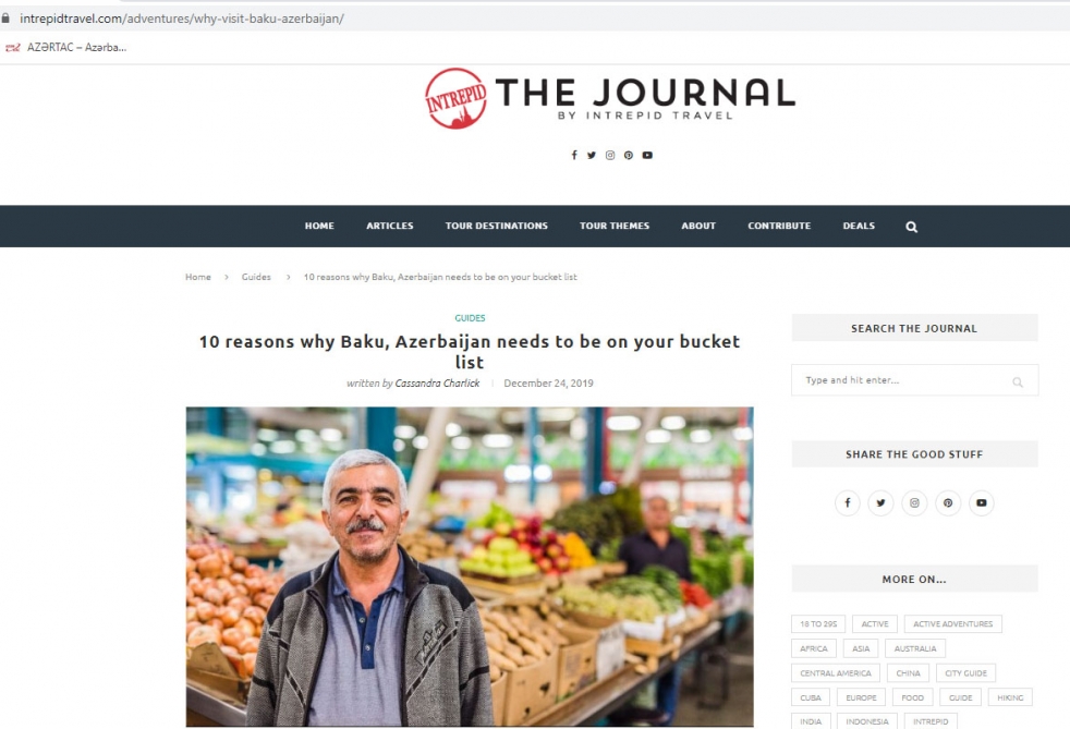 Avstraliyanın populyarlığı ilə seçilən "The journal by intrepid travel” saytı tanınmış bloqer və jurnalist Kasandra Çarlikin Azərbaycana səyahətin 10 səbəbi barədə məqaləsini yayıb.