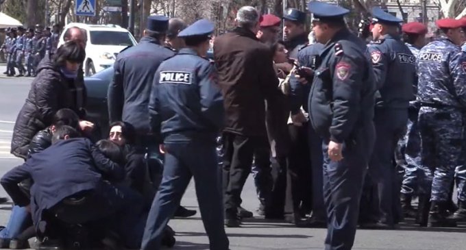 Bundan sonra polis etirazçılardan birini həbs etmək üçün güc tətbiq edib. Ardınca Bakı həbsxanalarında saxlanılan erməni terrorçuların yaxınları Tiqran Mets prospekti-Respublika meydanı yolunu bağlamağa çalışıb.
