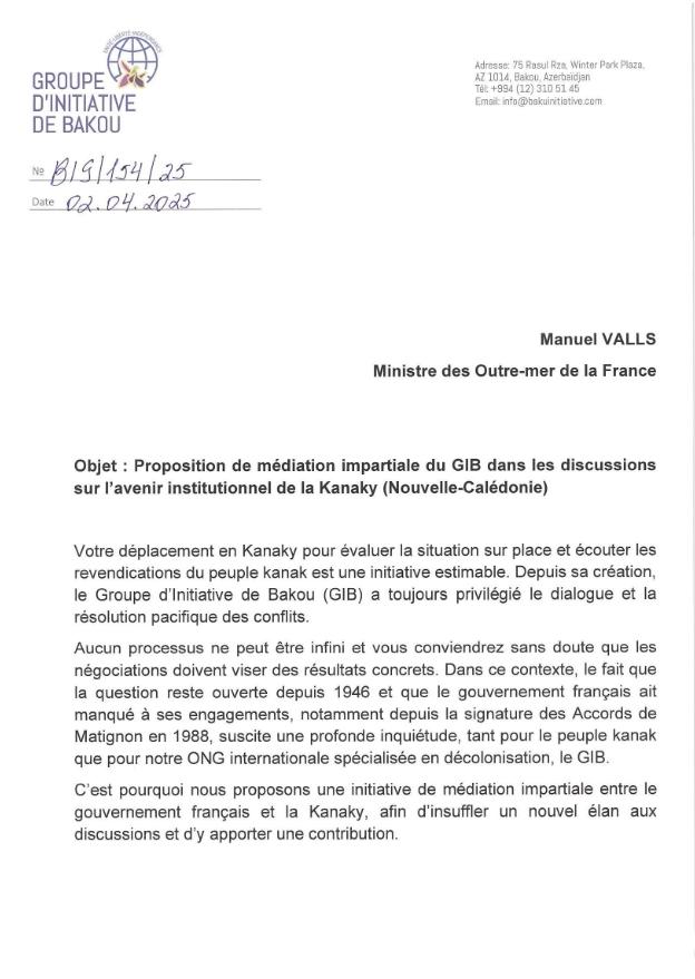 Bakı Təşəbbüs Qrupu Fransa hökuməti ilə Kanaki arasında danışıqlarda vasitəçilik təşəbbüsünü irəli sürüb