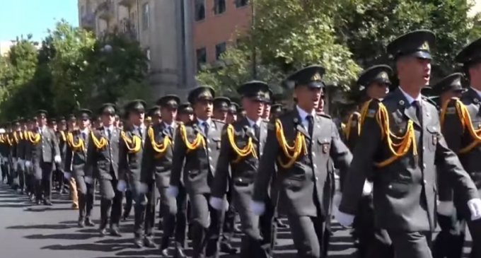 Qlobal.az xəbər verir ki, yürüş şəhərin mərkəzi küçə, prospekt və meydanlarında hərbi orkestrlərin müşayiəti ilə baş tutub.