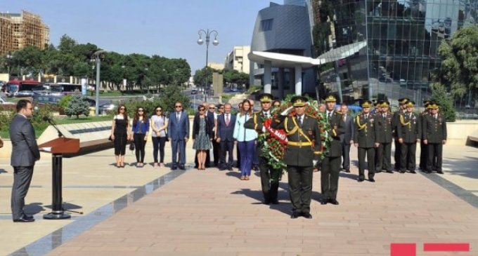 APA-nın məlumatına görə, əvvəlcə Türkiyənin Azərbaycandakı müvəqqəti işlər vəkili Meral Barlas abidənin önünə əklil qoyub, daha sonra xatirə kitabına ürək sözlərini yazıb.