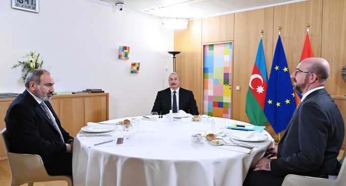 Azərbaycan Prezidenti İlham Əliyev, Avropa İttifaqı Şurası Prezidenti Şarl Mişel və Ermənistanın Baş naziri Nikol Paşinyan arasında üçtərəfli görüş başlayıb.