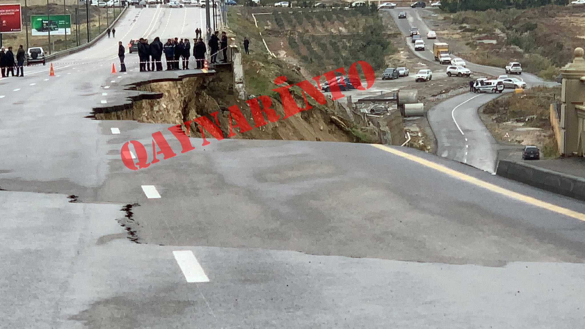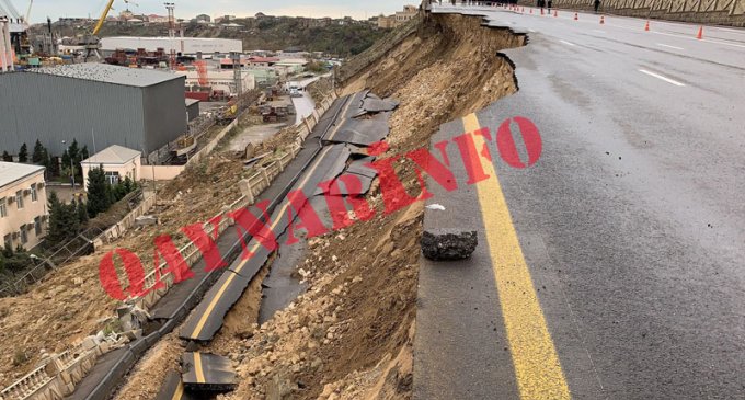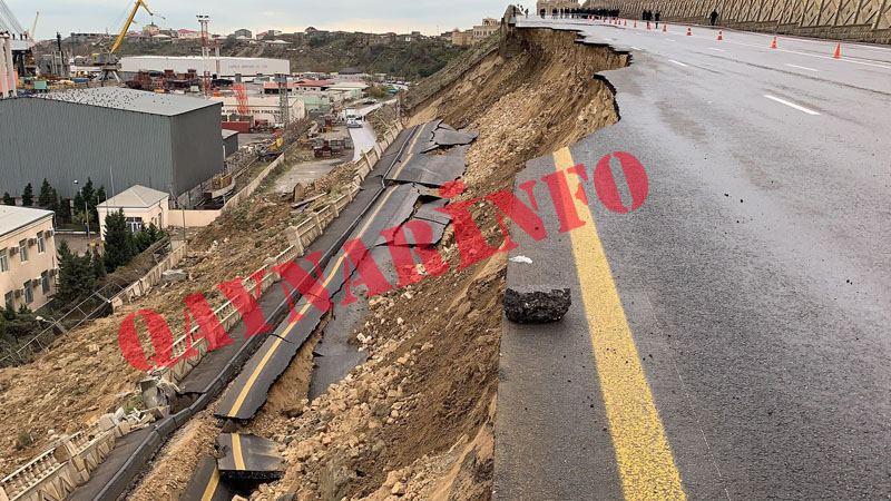 Bibiheybətdə yol uçdu, maşın altında qaldı (FOTOLAR)