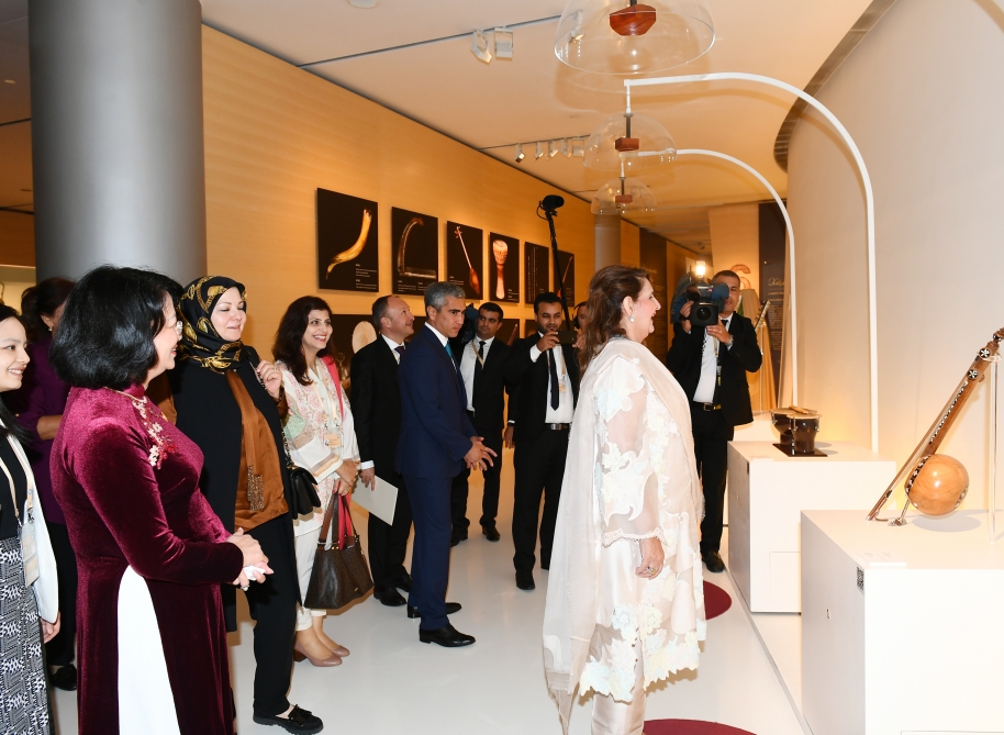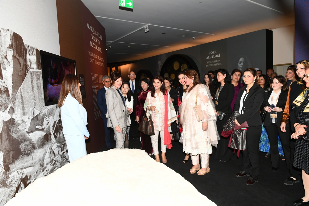 Sonra qonaqlar "Musiqi alətləri: birlik və müxtəliflik” sərgisinə də baxdılar. Ekspozisiyada Heydər Əliyev Fondunun müxtəlif mənbələrdən topladığı nadir kolleksiya – XVIII-XX əsrlərə aid 200-dək musiqi aləti nümayiş olunur. Sərgidə Azərbaycan musiqi mədəniyyəti tarixinə də geniş yer verilib. Burada 50-dək milli musiqi aləti yer alıb. Sərginin muğam otağında Azərbaycanın tanınmış xanəndələrinin ifalarından ibarət videoçarxlar, ekspozisiyadakı monitorlarda isə UNESKO-nun Qeyri-Maddi Mədəni İrs üzrə Reprezentativ Siyahısına daxil edilmiş Azərbaycan muğamı, aşıq sənəti, tar və kamança ifaçılığına aid musiqi nümunələri təqdim edilir. Sərgidə hər bir musiqi alətini seyr etməklə yanaşı, onu dinləmək də mümkündür.