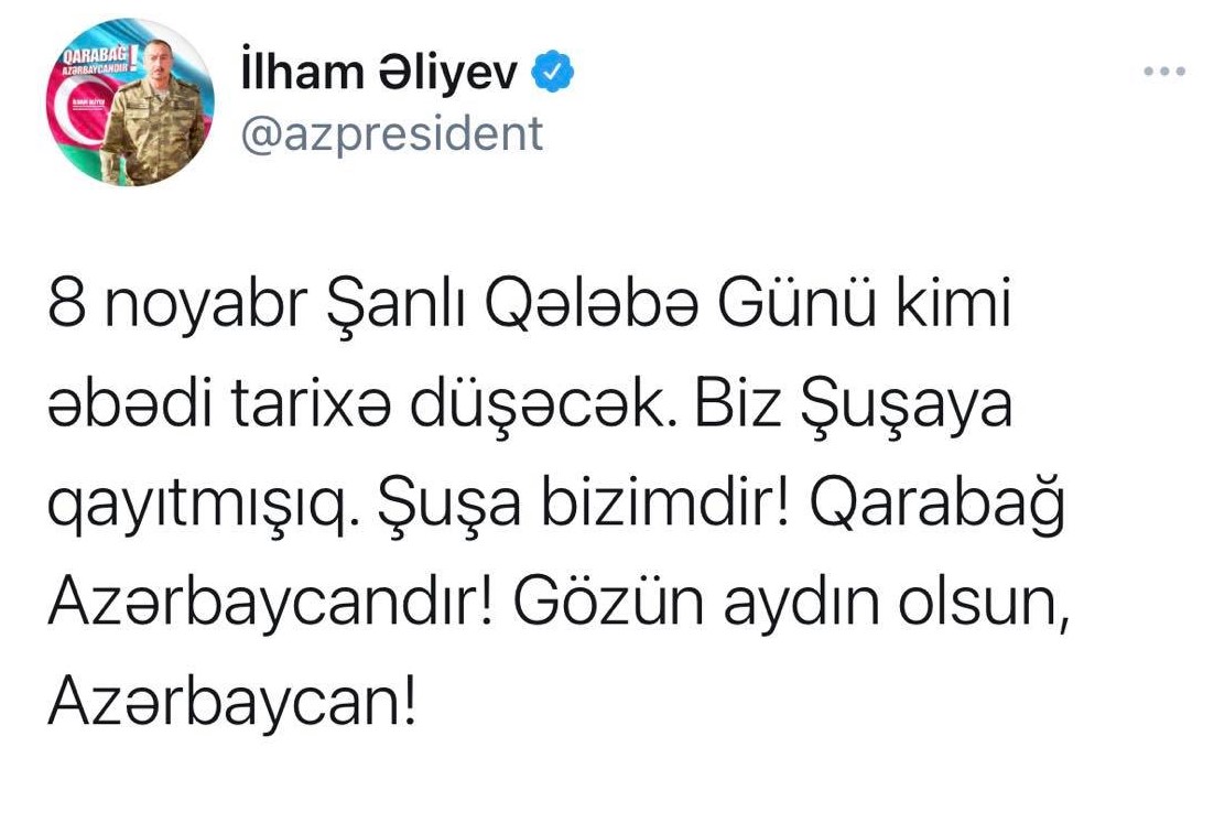 Qlobal.Az xəbər verir ki, bunu Ali Baş Komandan İlham Əliyev Tvitter səhifəsində paylaşıb.