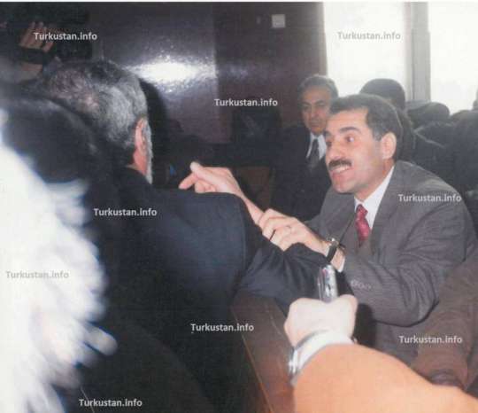 Turkustan.info-nun təqdim etdiyi bu tarixi fotoşəkildə Eldar Sabiroğlunun Əbülfəz Elçibəyin məhkəməsində iştirak etdiyi, hətta Elçibəyin qolundan çəkərək onunla gərgin mübahisə durumunda olduğu anlaşılır.