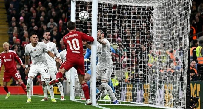 Qollar: Aleksis Makallister, 15; 61. Florian Virts, 21. Məhəmməd Salah, 50. Huqo Ekitike, 57. Federiko Kyeza, 90.