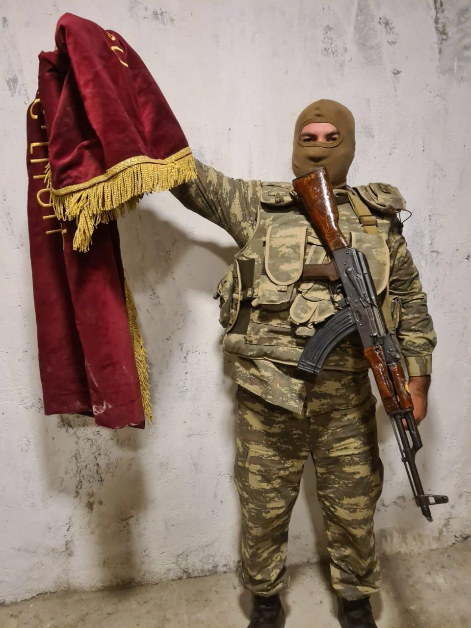 Ermənistanın ələ keçirilmiş döyüş bayraqlarının görüntüləri (FOTOLAR)