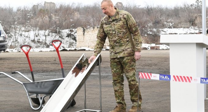 Prezident İlham Əliyev Füzuli-Hadrut avtomobil yolunun təməlini qoyub.