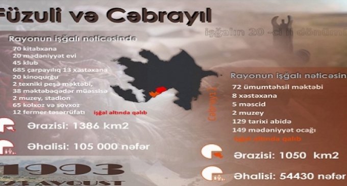Füzuli və Cəbrayıl rayonlarının işğalından 23 il keçir.