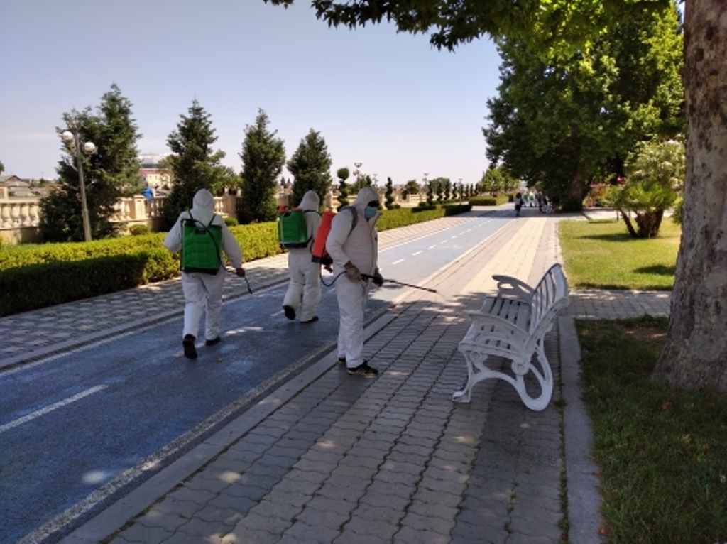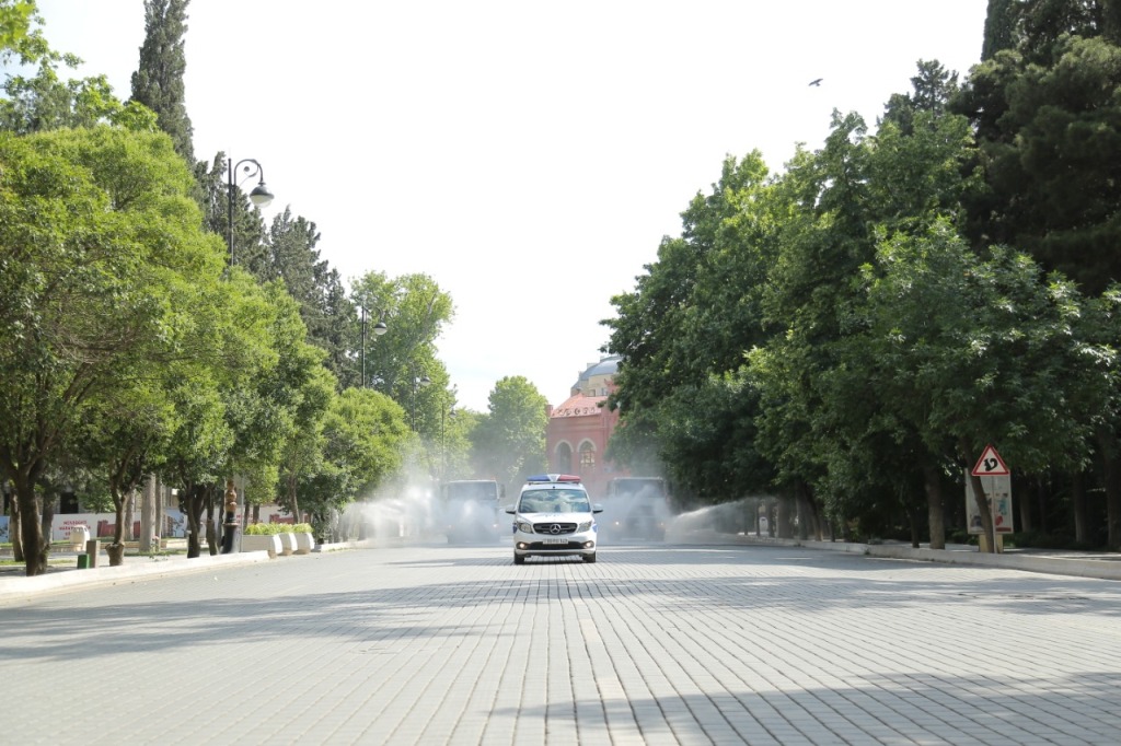 Gəncənin əsas küçə və prospektləri su çiləyici avtomobillər vasitəsi ilə xüsusi kimyəvi məhlulla yuyulublar. Səkilərdə, yol kənarlarında, park və meydanlarda, obyektlərin qarşısında da tibbi-profilaktiki işlər görülüb. Bununla yanaşı yaşayış binalarında, həyət və yaşayış məhəllələrində, buradakı idman-əyləncə qurğularında da dezinfeksiyaedici tədbirlər həyata keçirilib.