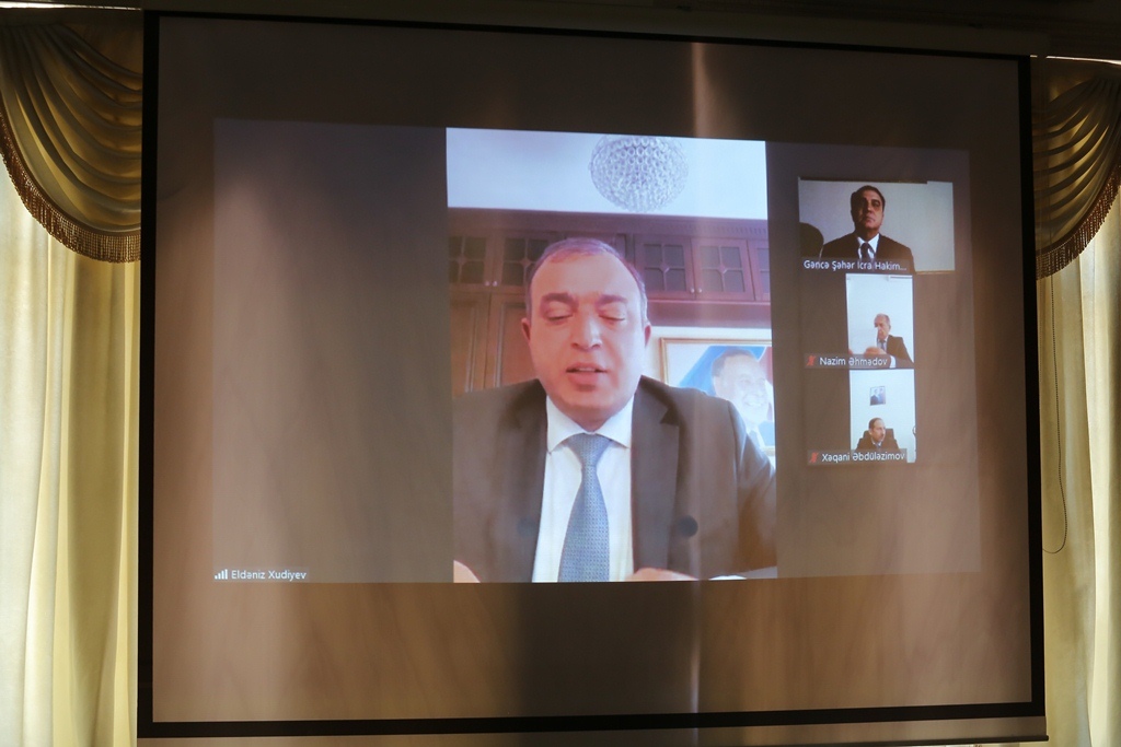 Kəpəz və Nizami Rayon İcra Hakimiyyətlərinin başçıları Eldəniz Xudiyev və Nizami Hacıyev də videokonfransda iştirak ediblər. Şəhər rəhbərinə bildirilib ki, hər iki rayonun ərazisində koronavirusa qarşı mübarizə tədbirləri davam etdirilir. Mütəmadi olaraq çoxmənzilli binalarda, küçə və prospektlərdə dezinfeksiya işləri həyata keçirilir. RİH əməkdaşları tərəfindən sakinlər arasında izahetmə-xəbərdaqlıq işləri görülür. Kəpəz və Nizami rayonlarının ərazilərində müvafiq olaraq 7 və 10 mindən çox sakinlə maarifləndirici söhbətlər aparılıb.