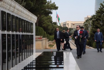 Daha sonra baş nazir Giorgi Kvirikaşvili Azərbaycanın müstəqilliyi və ərazi bütövlüyü uğrunda canlarından keçmiş qəhrəman Vətən övladlarının məzarlarını ziyarət edib, üzərinə gül dəstələri düzüb.