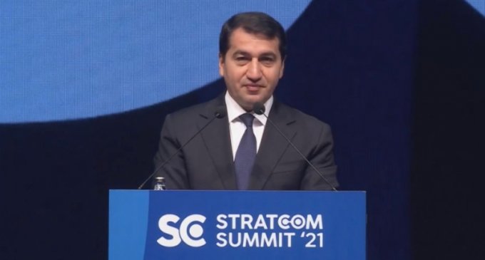 Bu fikirləri Azərbaycan Respublikası Prezidentinin köməkçisi - Prezident Administrasiyasının Xarici siyasət məsələləri şöbəsinin müdiri Hikmət Hacıyev dekabrın 11-də İstanbulda keçirilən Beynəlxalq Strateji Kommunikasiya - "Stratcom 21" Sammitinin açılış mərasimindəki çıxışında ifadə edib.