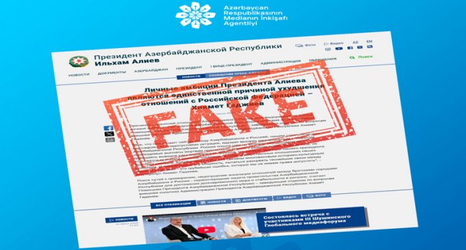 Bildirilib ki, Azərbaycan Respublikası Prezidentinin rəsmi saytının görüntüsünü imitasiya edərək hazırlanmış və uydurma iddiaların yer aldığı bu açıqlama ictimai rəyi çaşdırmağa yönələn kobud informasiya manipulyasiyası nümunəsidir.