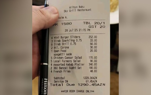 "Hilton Baku” hoteldə turistlərin ödədiyi hesab sosial şəbəkələrdə müzakirəyə səbəb olub.