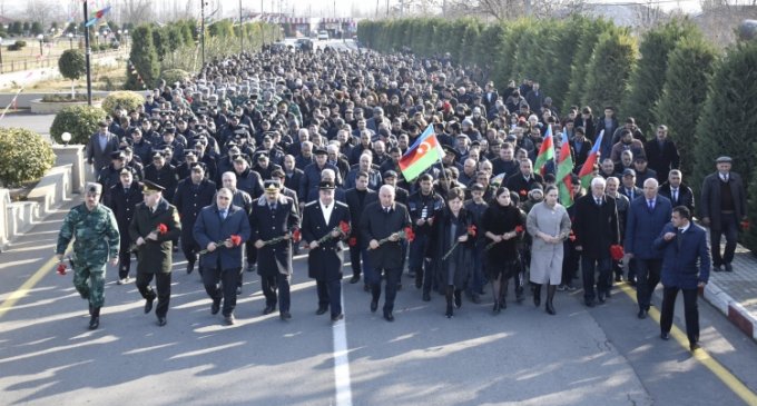 AZƏRTAC-ın bölgə müxbiri xəbər verir ki, bu münasibətlə Horadiz şəhərində rayon ictimaiyyətinin, "N” saylı hərbi hissənin zabit və əsgərlərinin, Qarabağ müharibəsi veteranlarının, Horadiz əməliyyatında iştirak edən keçmiş döyüşçülərin iştirakı ilə mərasim keçirilib. Tədbir iştirakçıları əvvəlcə Heydər Əliyev prospekti ilə yürüş edib, Ümummilli Liderin abidəsi önünə gül dəstələri düzərək, xatirəsinə ehtiramlarını bildiriblər. Respublikamızın müstəqilliyi və ərazi bütövlüyü uğrunda həlak olan Vətən övladlarının xatirəsi bir dəqiqəlik sükutla yad edilib.