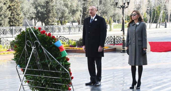 Qlobal.az xəbər verir ki, dövlət başçısı Xocalı soyqırımı abidəsinin önünə əklil qoyub, faciə qurbanlarının xatirəsini ehtiramla yad edib.