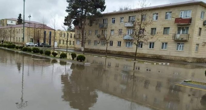 Martın 2-də aramsız yağan yağışlar İmişli rayonunun küçələrini süni gölə çevirib.