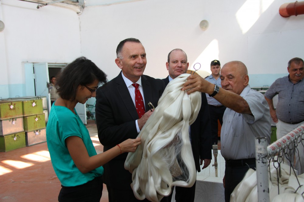 Sonra səfir Şəkinin görməli yerlərini gəzib, tarixi məkanlarına baş çəkib, "Şəki-İpək” ASC və "Şəki Aqro İndastris” MMC-də istehsal prosesi ilə tanış olub, meyvə bağının salındığı təsərrüfat sahəsinə baxıb.(Azərtac)