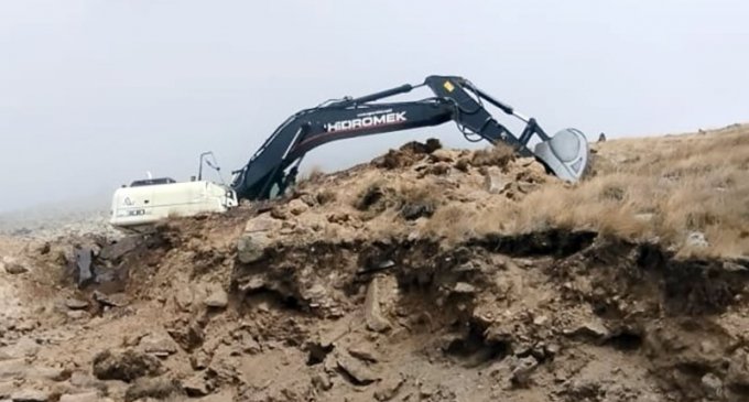 Laçında mülki şirkətə məxsus ekskavator atəşə tutuldu (FOTO)