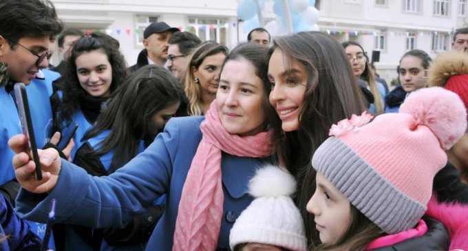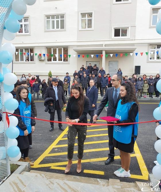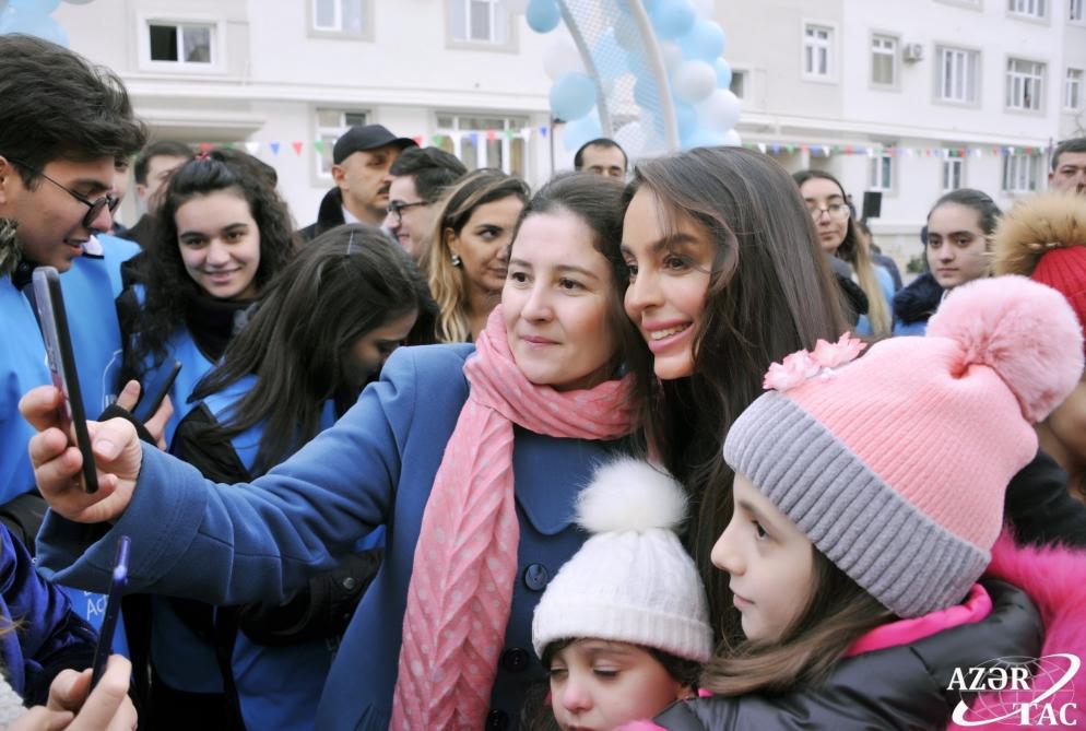 Qlobal.az xəbər verir ki, Heydər Əliyev Fondunun vitse-prezidenti, IDEA İctimai Birliyinin təsisçisi və rəhbəri Leyla xanım Əliyeva həyətin açılışında, o cümlədən tədbir zamanı keçirilmiş kütləvi ağacəkmədə iştirak edib.
