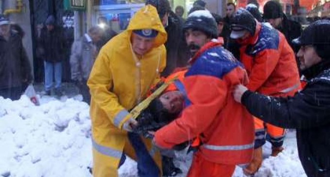 Türkiyənin Rizə şəhərində məscidin damında toplanan qar yoldan keçən iki nəfərin başına tökülüb.