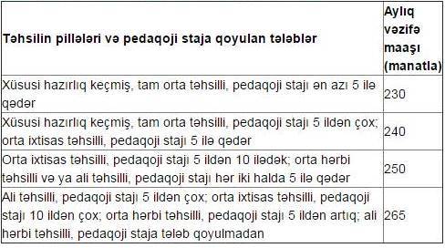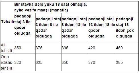 Müəllimlərin maaşı artdı – CƏDVƏL