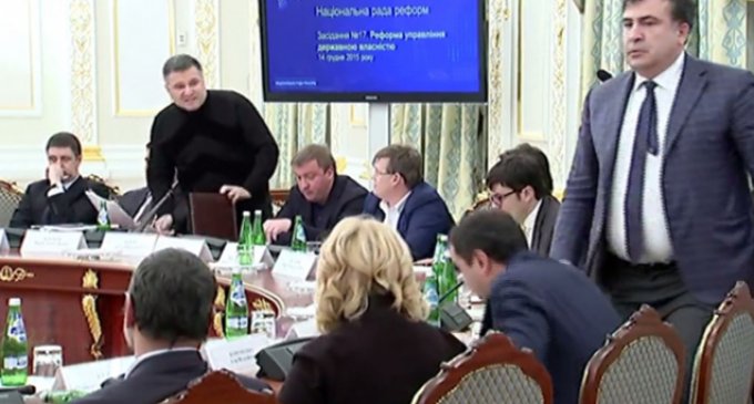 Dekabrın 14-də prezidentin rəhbərlik etdiyi Milli İslahat Şurasının toplantısında Avakov münaqişə zəminində Saakaşviliyə "Ölkəmdən rədd ol” deyərək üzünə içərisi su ilə dolu stəkan atıb.