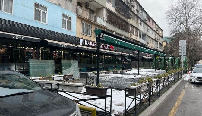 Bakının Nərimanov rayonunda yerləşən "Zeyd” restoranı səkinin əsas hissəsini zəbt edib.