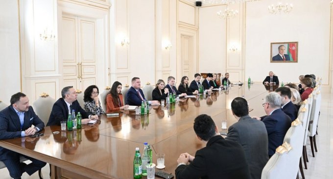 Azərbaycan Prezidenti İlham Əliyev fevralın 9-da ABŞ Ticarət Palatasının beynəlxalq üzvlərlə əlaqələr, Yaxın Şərq və Türkiyə üzrə baş vitse-prezidenti Kuş Çoksinin başçılıq etdiyi nümayəndə heyətini qəbul edib.