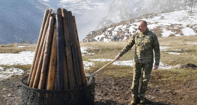 Prezident İlham Əliyev Şuşada, Cıdır düzündə Novruz bayramı tonqalını yandırıb.