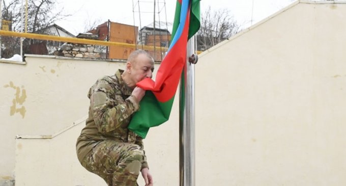 Prezident Hadrutda Azərbaycan bayrağını qaldırdı (FOTO)