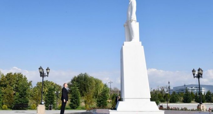 Qlobal.az xəbər verir ki, dövlətimizin başçısı xalqımızın ümummilli lideri Heydər Əliyevin Ağdaş şəhərində ucaldılmış abidəsini ziyarət edərək önünə gül dəstəsi qoyub.