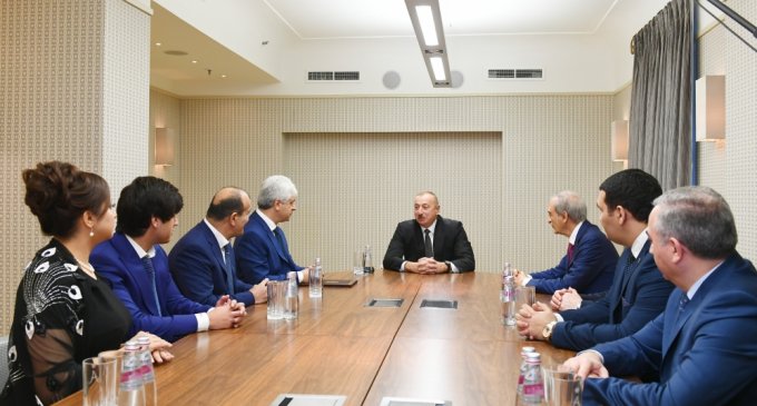Prezident İlham Əliyev Sankt-Peterburqda fəaliyyət göstərən Azərbaycan diaspor təşkilatlarının rəhbərləri ilə görüşüb - FOTO
