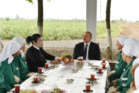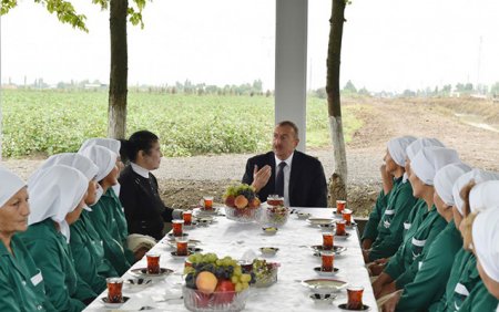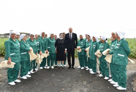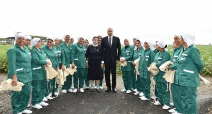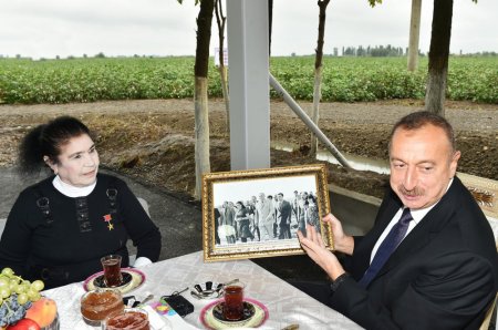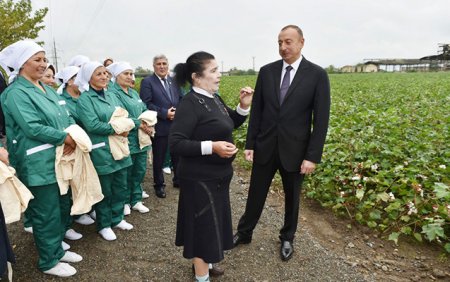 Qlobal.Az azertac-a istinadən xəbər verir ki, dövlət başçısı Sosialist Əməyi Qəhrəmanı Fatma Hüseynovanın pambıq əkini sahəsində olub.