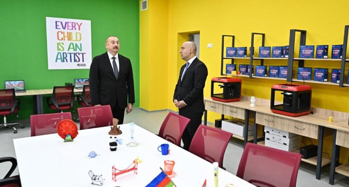 Dövlət başçısı məktəbdə yaradılan şəraitlə tanış oldu.