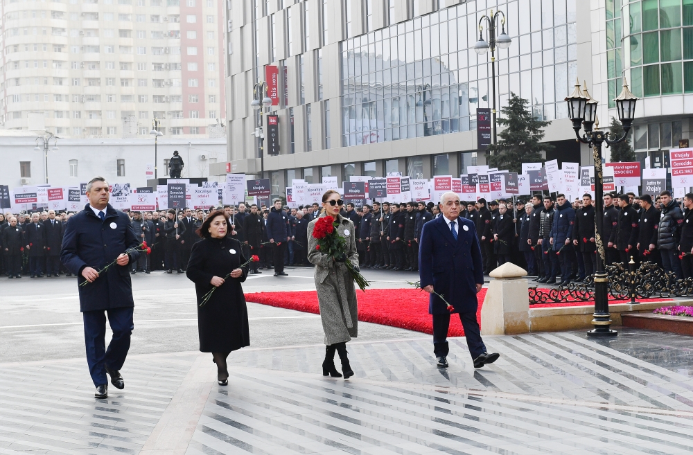 Birinci xanım Mehriban Əliyeva, Baş nazir Əli Əsədov, Milli Məclisin sədri Sahibə Qafarova, Prezident Administrasiyasının rəhbəri Samir Nuriyev abidənin önünə gül dəstələri qoydular.