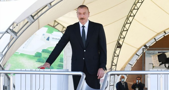 Qlobal.Az xəbər verir ki, dövlət başçısı, həmçinin 385 meqavatlıq "Qobu” Elektrik Stansiyasının təməlini qoyub.