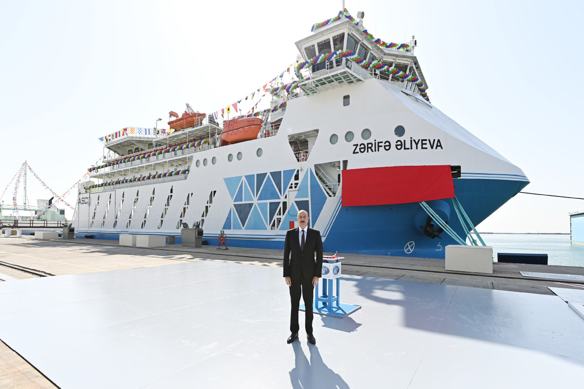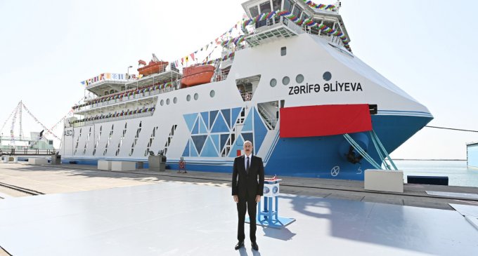 Prezident “Zərifə Əliyeva” gəmi-bərəsinin istismara verilməsi mərasimində iştirak edib