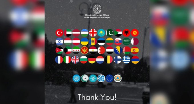 Rəsmi Bakı Azərbaycana dəstək verən ölkə və təşkilatlara təşəkkür etdi