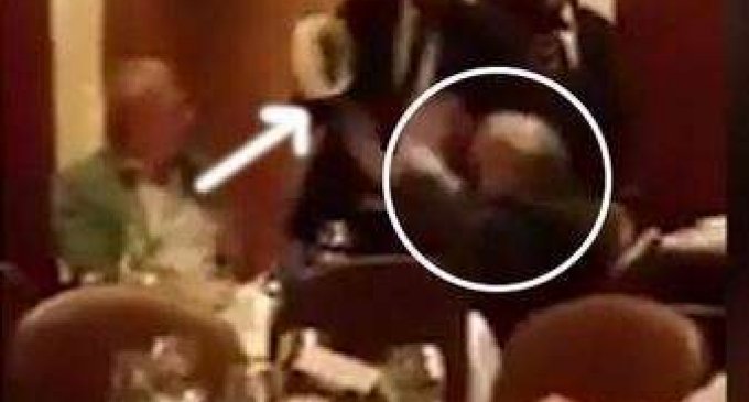 Kadrlardan görünür ki, restorana əllərində tort və telefon olan iki nəfər girir. Onlardan biri siyasətçiyə yaxınlaşaraq üzünə tortu çırpır, digəri isə kameraya çəkir.