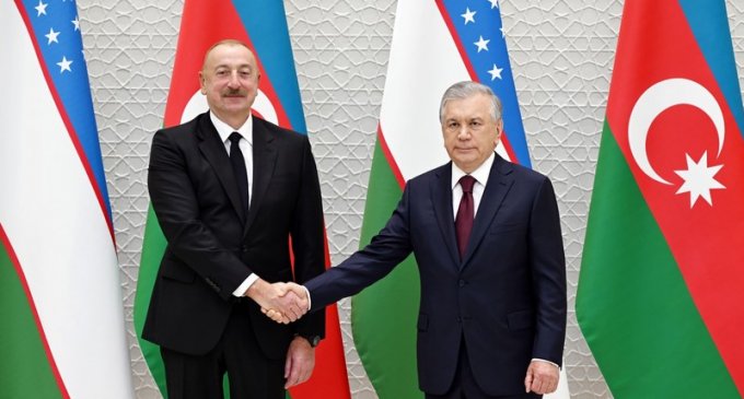 Azərbaycan Prezidenti İlham Əliyev Özbəkistan Prezidenti Şavkat Mirziyoyevi qarşılayıb.
