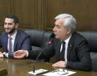 Ermənistan parlamentinin Müdafiə və Təhlükəsizlik üzrə Daimi Komissiyasının sədri Andranik Koçaryan qanunverici orqanın tribunasında ölkənin Müdafiə N...