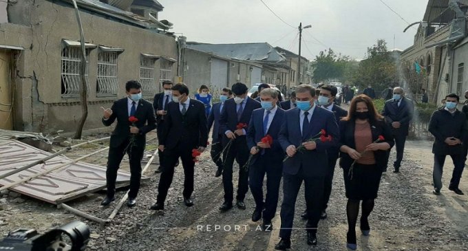Onlar səfər çərçivəsində Gəncədə erməni terroru nəticəsində dağılmış ərazilərə baş çəkib, qurbanların xatirəsini anıblar.